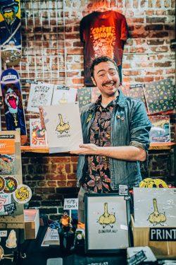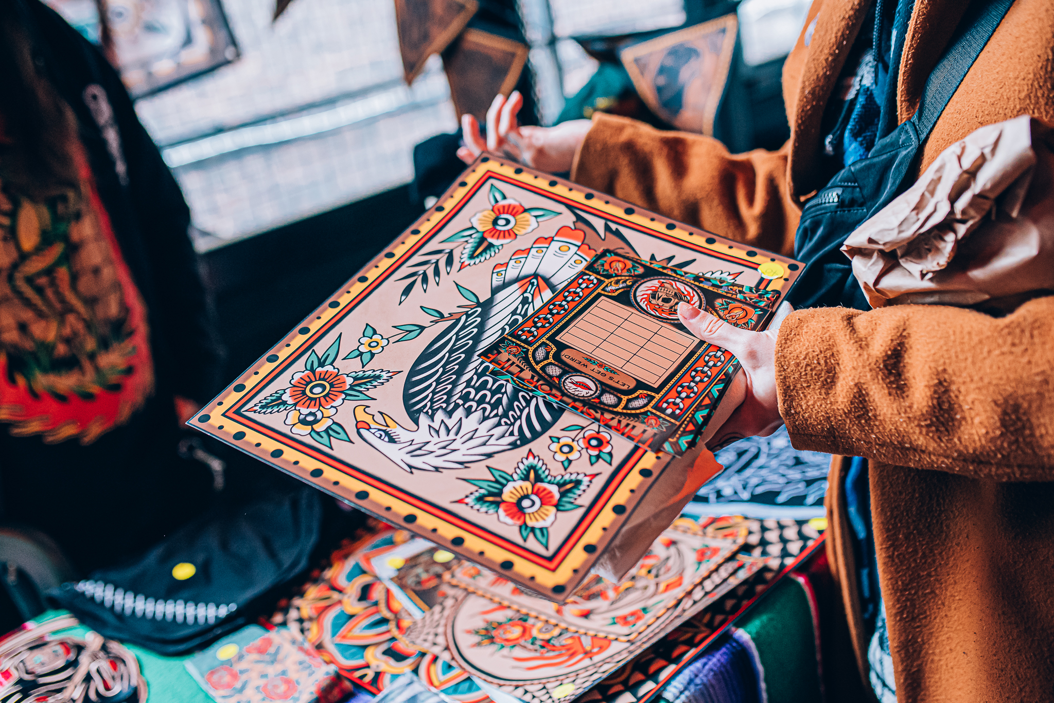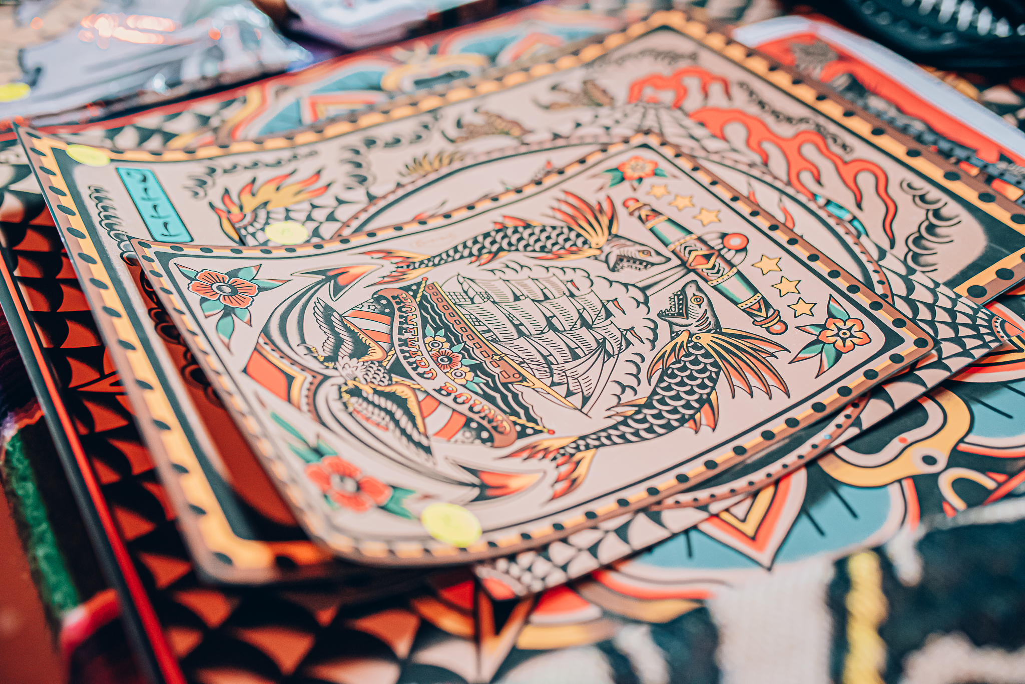ArtistSixes & Sevens brings traditional tattoo art to a wide variety of items, including notebooks, paintings, woodworking and more!